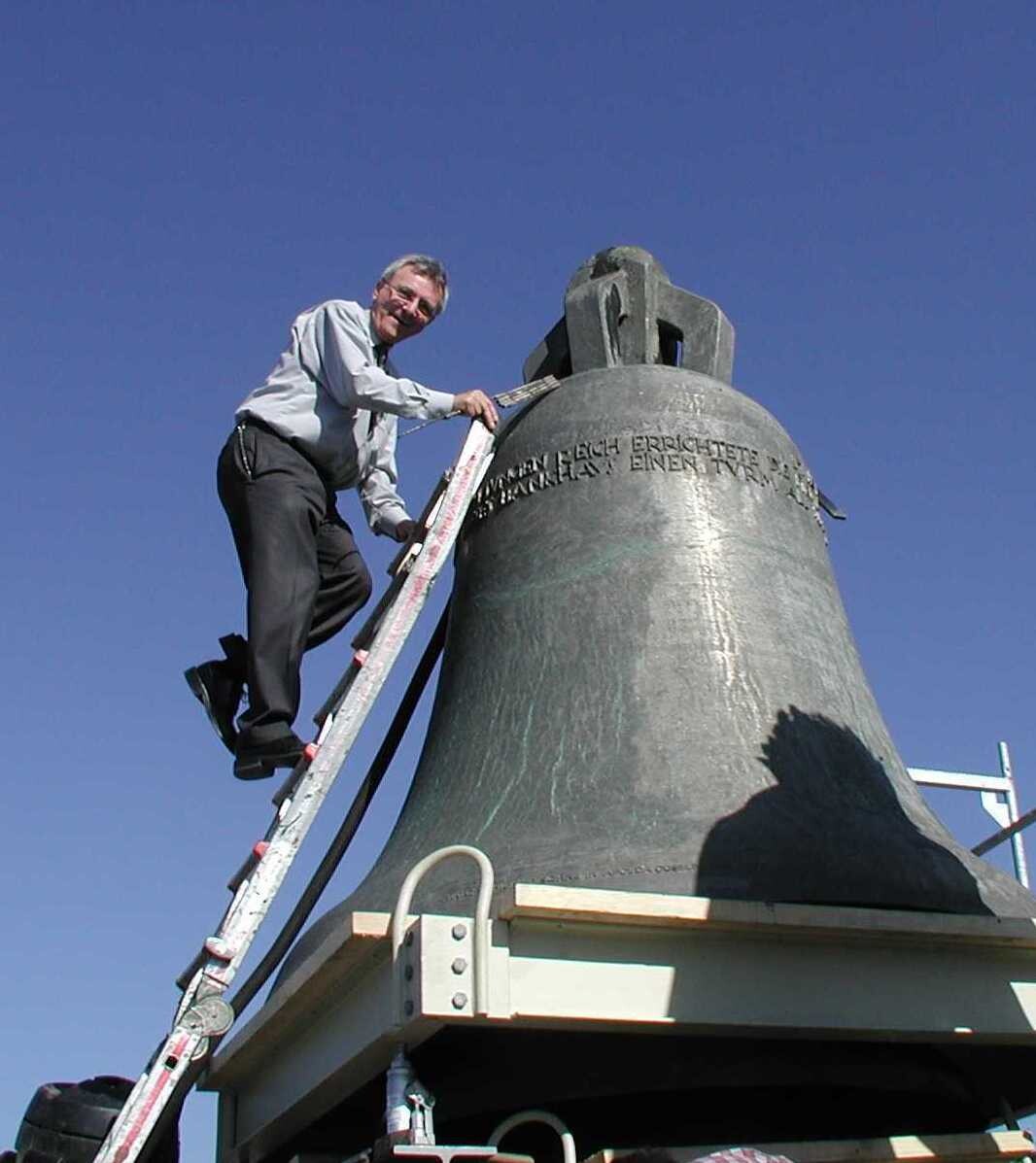 Der eingerüstete Kirchturm der Nikolaikirche wird (und ist heute noch) zentraler Bestandteil unseres Firmenlogos. Das Tragwerk des Turmspitzgerüsts wurde durch Georg Lochas geplant.