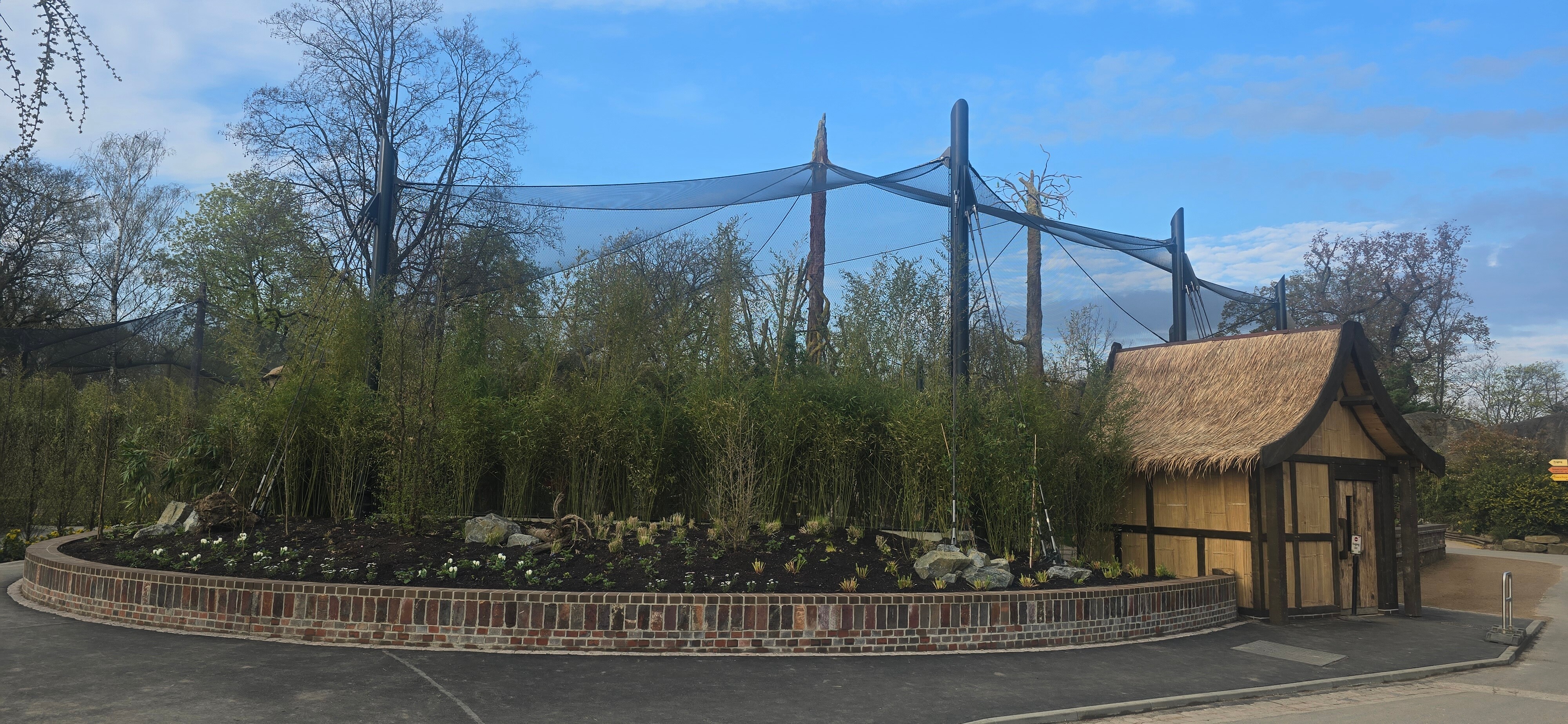 Im Zoo Leipzig entstanden im Rahmen des Masterplans „Zoo der Zukunft“ zwei artgerechte Volieren für Großpapageien und Loris. Die Anlagen umfassen 830 m² für Aras und 540 m² für Loris, eingebettet in die asiatischen Inselwelten. Der wenig tragfähige Baugrund und die filigrane Architektur stellten besondere Anforderungen an die Planung.