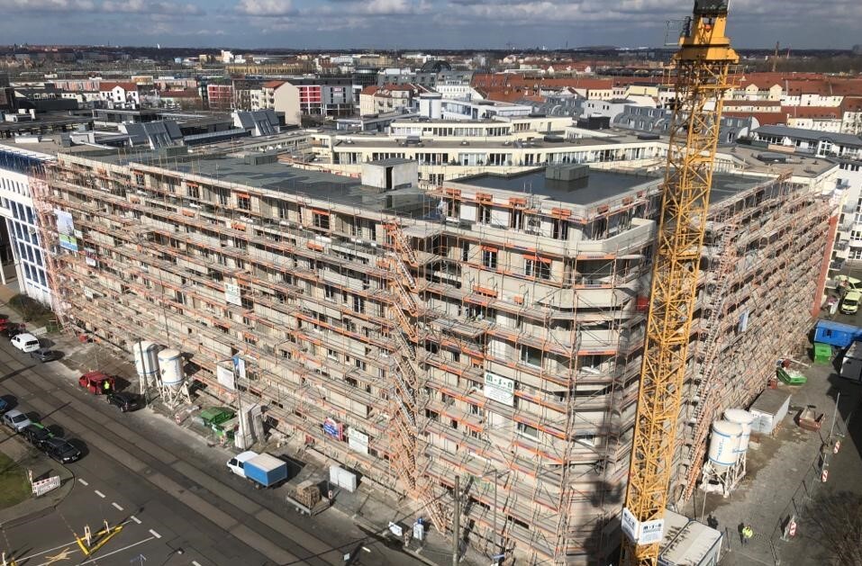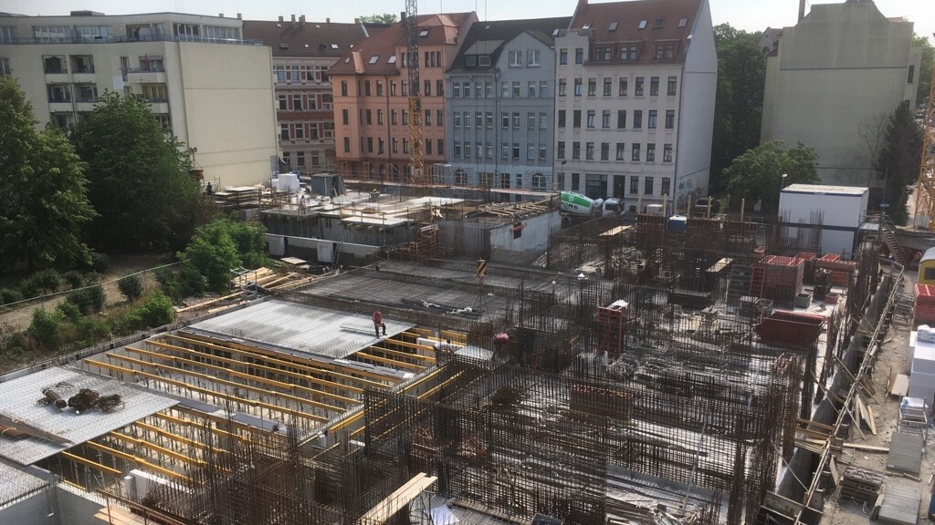 Im Leipziger Zentrum entstand mit dem Projekt Konstantinum ein Wohn- und Gewerbekomplex aus sechs Gebäudeteilen auf einer gemeinsamen Tiefgarage. Der Komplex umfasst zwei Untergeschosse, ein Erdgeschoss mit Gewerbeflächen sowie bis zu acht Obergeschosse mit 123 Wohnungen. Die Massivbauweise mit Mauerwerkswänden, Stahlbetonstützen und Flachdecken wurde durch die gestaffelte Gebäudegeometrie und verspringende Fassaden herausgefordert, die einen komplexen Lastabtrag erforderten.