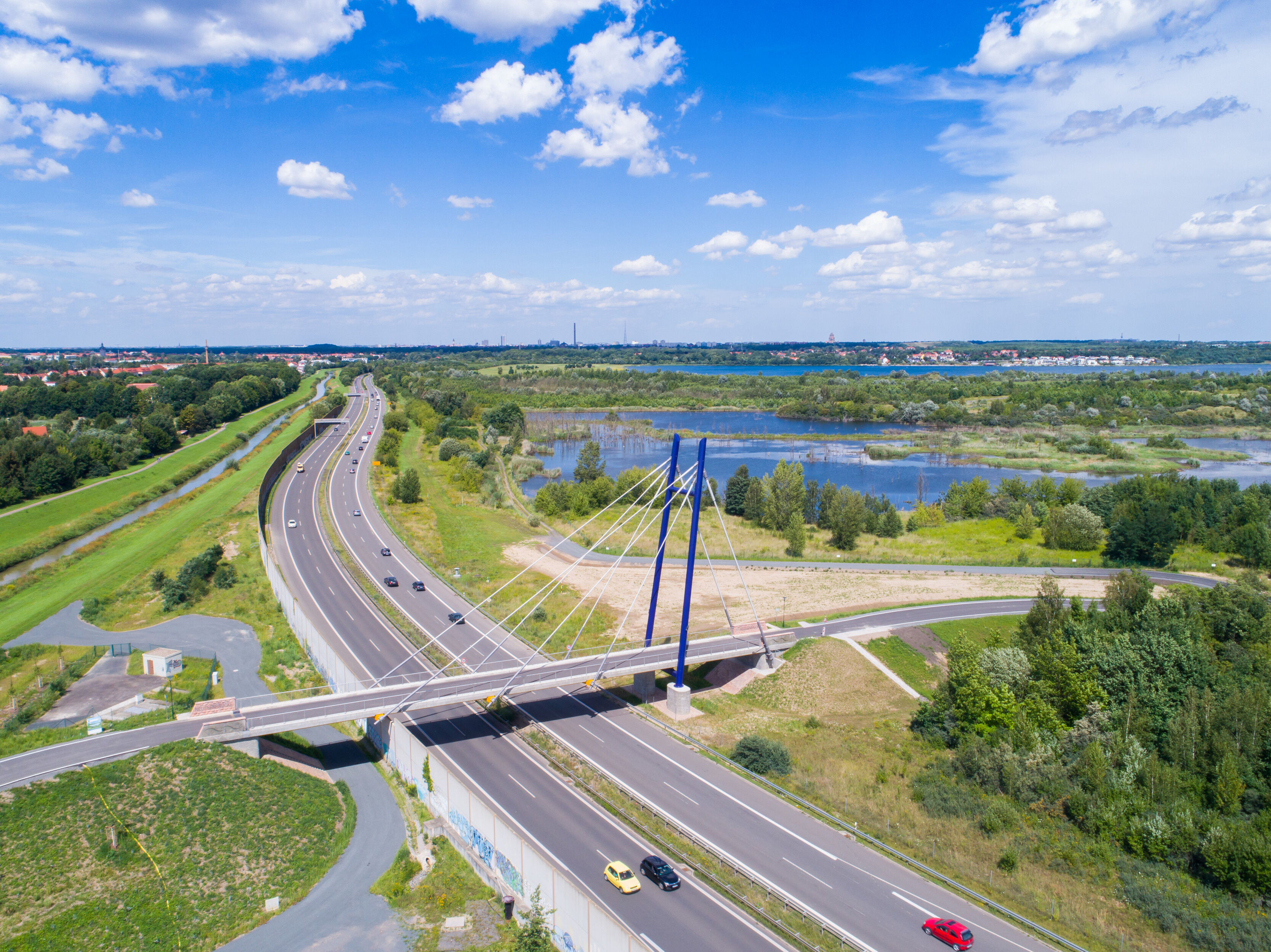 Der Leipziger Südraum wandelt sich vom Bergbaurevier in eine Seenlandschaft mit Erholungs- und Freizeitsportcharakter. Die neue Brücke ist das Bindeglied zwischen Cospudener und Markkleeberger See.