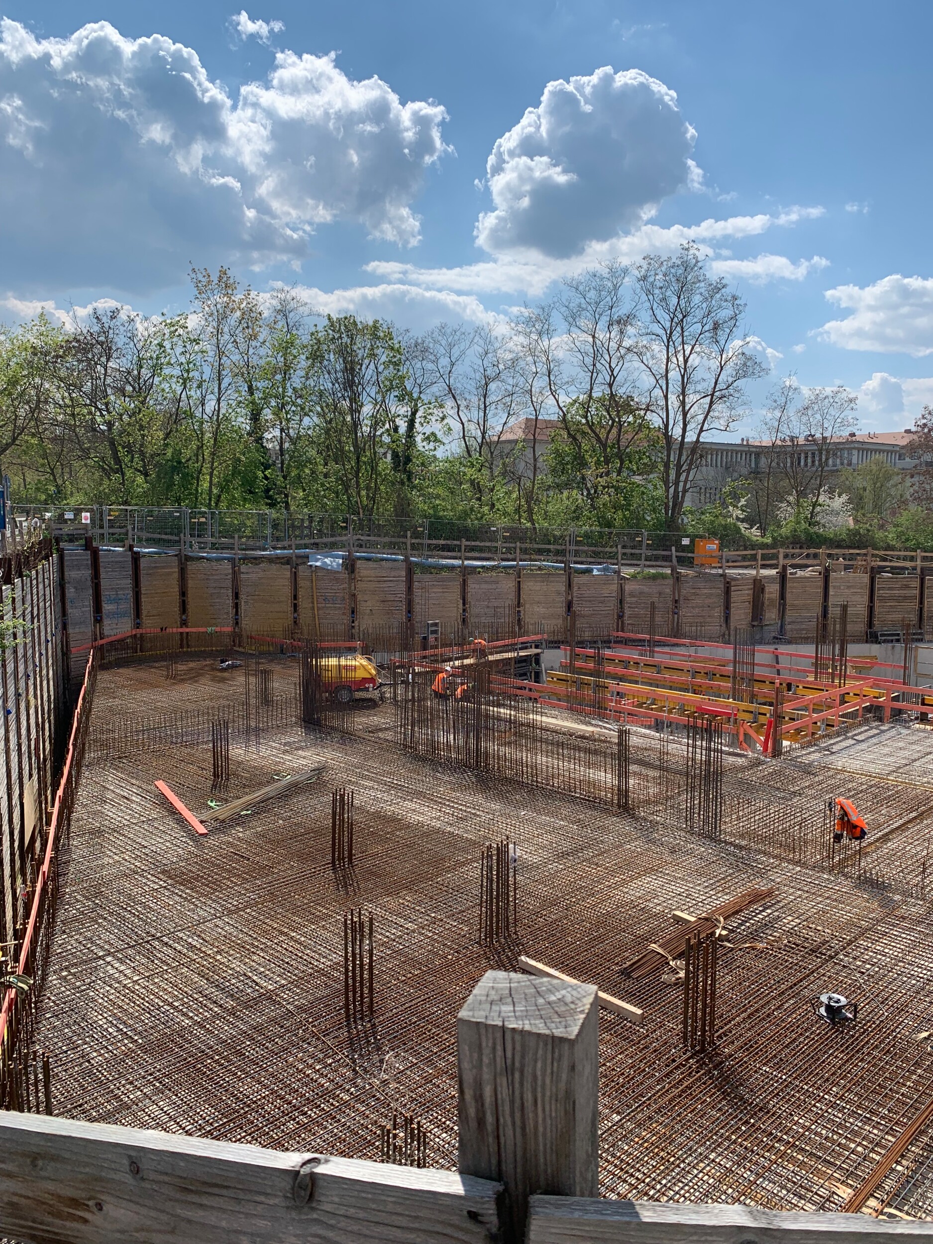 Eine besondere Herausforderung stellten die großen, stützenfreien Durchgänge zum Innenhof sowie anspruchsvolle Baugrundverhältnisse mit vorhandenen Kohleflözen dar. Gleichzeitig mussten unterschiedliche Nutzungen – Wohnen, Büro, Einzelhandel und Tiefgarage – konstruktiv sinnvoll miteinander verbunden werden.